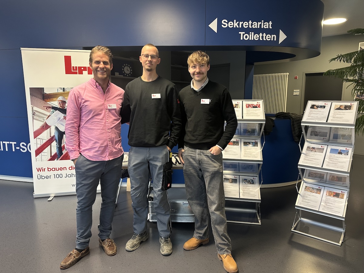 Für Lupp standen Ausbildungsleiter Yann Lupp sowie die ehemaligen Schüler Jonas Wächter (duales Studium Bauingenieurwesen) und Ewgenij Avdeeva (duales Studium Bauingenieurwesen/Schwerpunkt Beton- und Stahlbetonbau) für alle Fragen der Schülerinnen und Schüler bereit. Es ging um offene Ausbildungsstellen, Praktika, das duale Studium und die beruflichen Perspektiven nach einer erfolgreichen Ausbildung bei Lupp. Besonders positiv wurde von den vielen interessierten SchülerInnen aufgenommen, dass zwei ehemalige Schulkameraden aus erster Hand von ihren Erfahrungen als Auszubildende bei Lupp berichten konnten. Auch die Schulleitung freute sich, die beiden Abgänger in neuer Funktion am Lupp-Messestand begrüßen zu können.